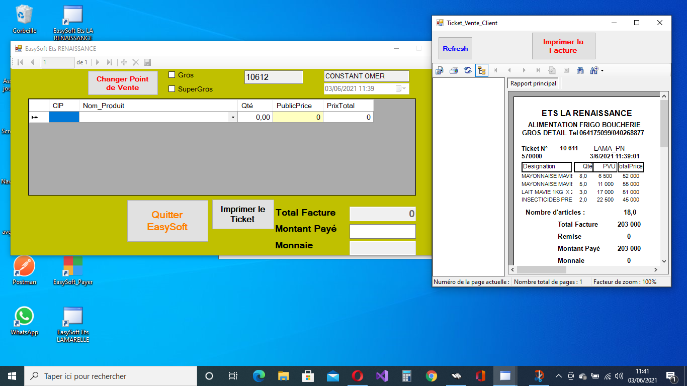 Vue d'un ticket Client de EasySoft : Notre POS