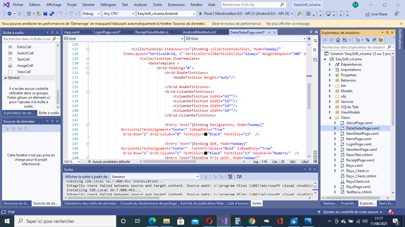 Page de facturation de notre application androide de Facturation et de Commande