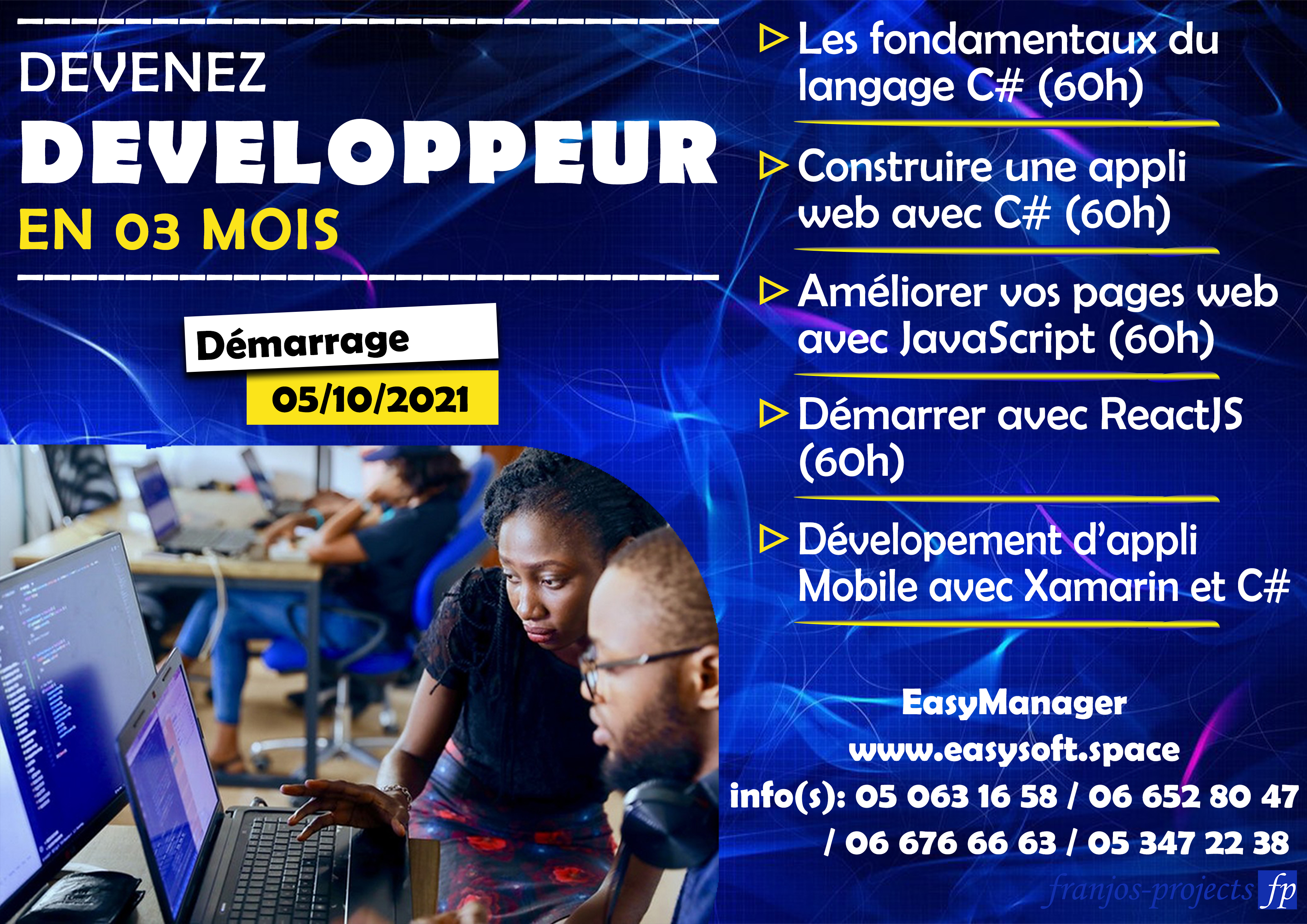 60 Heures de formations qui s'etaleront sur 10 Semaines. 20 places seulement etant disponible par module,